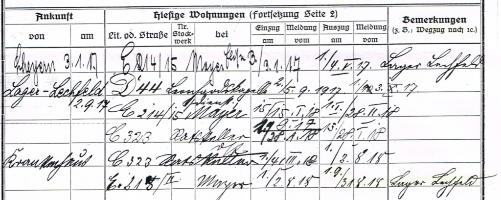| 02.05.1917 | 01.09.1917 | Lager Lechfeld – vermutlich aber nicht die ganze Zeit, wegen Postkarte vom 25.06.1917! |
