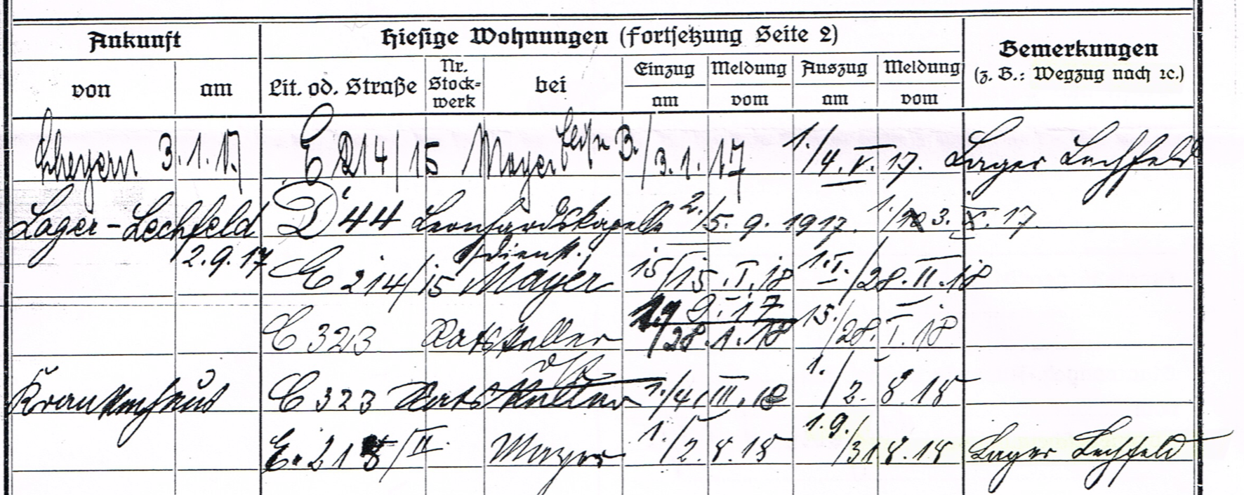 | 03.01.1917 | 01.05.1917 | Aeusseres Pfaffengässchen 10 bei Elise Mayer |